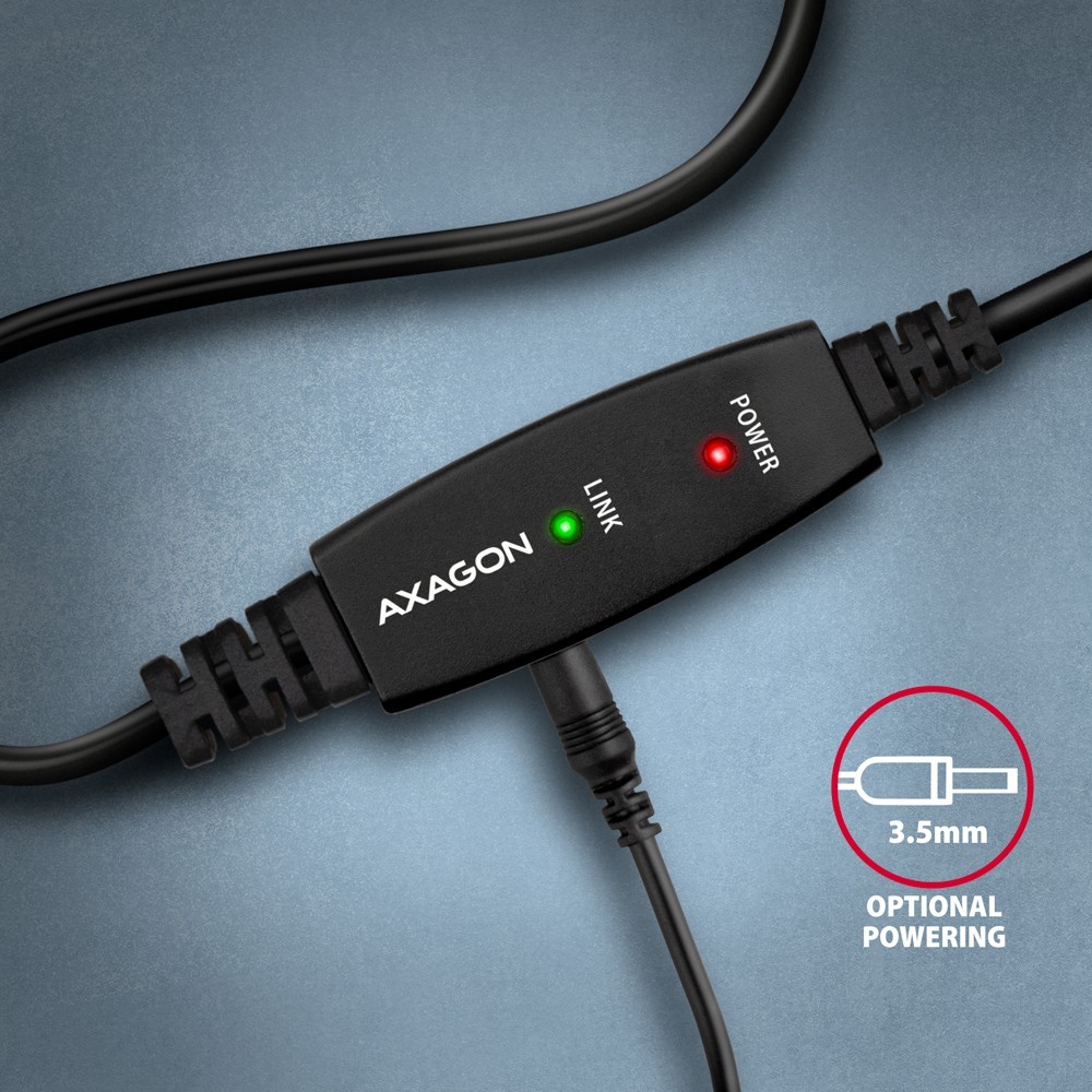 Aktywna część kabla zawiera złącze ( 3.5 x 1.3 mm zewnętrzna x wewnętrzna średnica) do dodatkowego zasilania zewnętrznego 5V/1-2A.